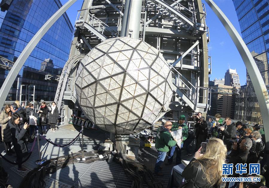 這是12月27日在美國紐約時(shí)報(bào)廣場(chǎng)拍攝的水晶球安裝現(xiàn)場(chǎng)。 每年12月31日晚,紐約時(shí)報(bào)廣場(chǎng)都會(huì)舉辦跨年慶典,當(dāng)午夜鐘聲響起之時(shí),水晶球緩緩落下,慶祝新的一年到來。 新華社記者 張墨成 攝