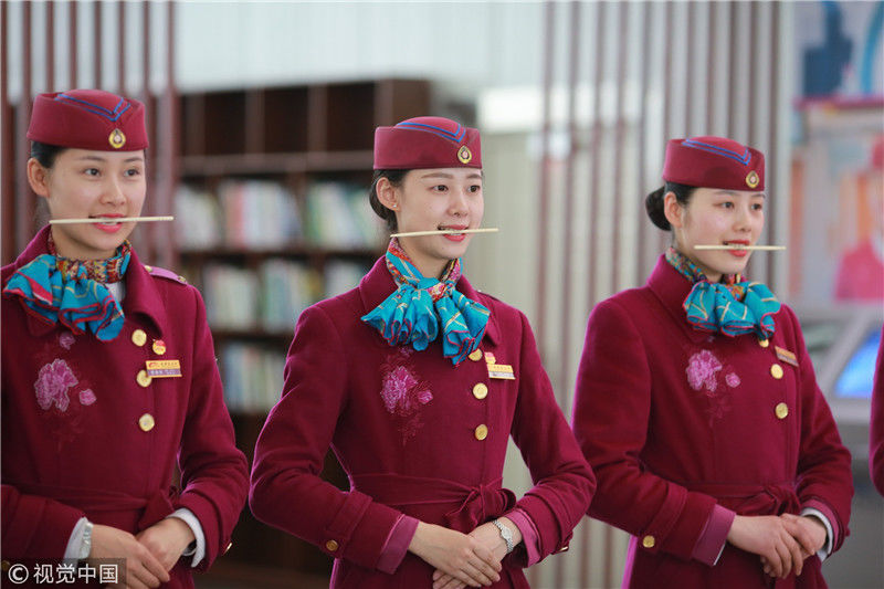 2018年12月27日,四川成都,為備戰(zhàn)即將開通的成雅鐵路,中國鐵路成都局集團(tuán)有限公司成都客運(yùn)段動車二隊(duì)對成雅動車的乘務(wù)人員進(jìn)行理論、形體、服務(wù)禮儀等內(nèi)容的培訓(xùn)。