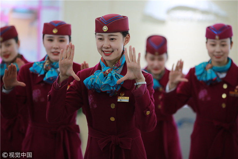 2018年12月27日,四川成都,為備戰(zhàn)即將開通的成雅鐵路,中國鐵路成都局集團(tuán)有限公司成都客運(yùn)段動車二隊(duì)對成雅動車的乘務(wù)人員進(jìn)行理論、形體、服務(wù)禮儀等內(nèi)容的培訓(xùn)。