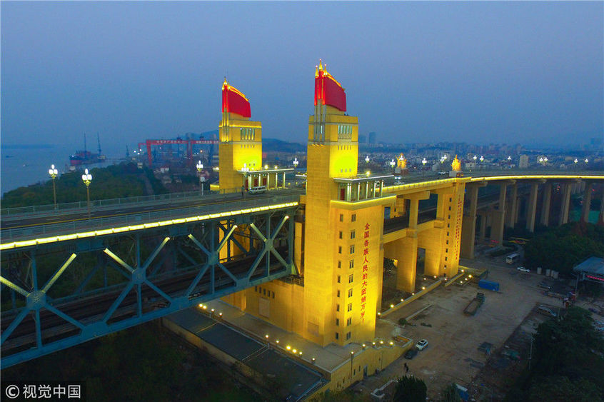 2016年10月28日晚,服役48年的南京長江大橋正式封閉,進入合同工期長達27個月的改造提升期。身為我國橋梁建設(shè)領(lǐng)域的扛鼎之作,南京長江大橋的此次封閉改造牽涉到公路繁忙、鐵路風險、技術(shù)攻關(guān)、文物保護等諸多難點,不僅影響面廣,而且社會關(guān)注度極高。如今,隨著整個工程進入收尾階段,即將于2018年12月底正式通車。圖為2018年12月13日,夜幕降臨,南京長江大橋歸位后的玉蘭花燈重新點亮。大橋玉蘭花燈柱共有299根,每根燈柱上有5盞玉蘭花燈,1大4小,一共1495盞。
