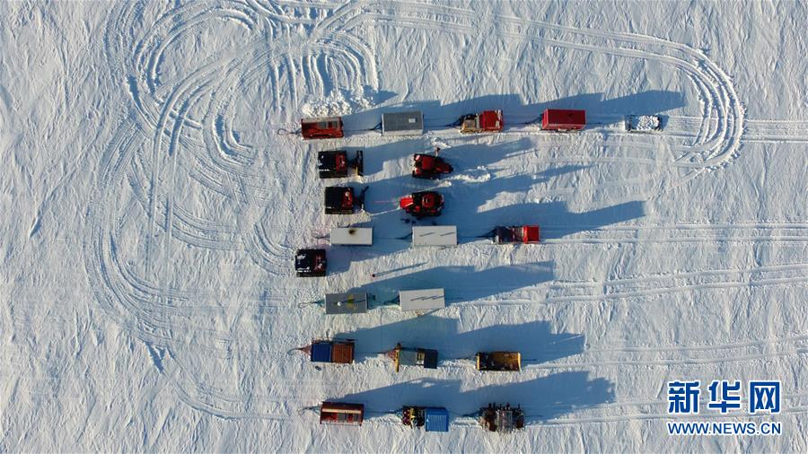 昆侖隊(duì)距離南極中山站990公里處的營地(2019年1月1日無人機(jī)拍攝)。