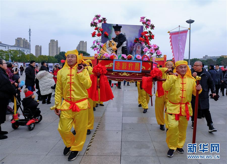 1月1日在展演活動(dòng)上拍攝的“抬閣”表演。2019年元旦,浙江省桐鄉(xiāng)市濮院鎮(zhèn)舉辦新年“非遺文化藝術(shù)節(jié)”活動(dòng),濮院鎮(zhèn)下屬多個(gè)鄉(xiāng)村的傳統(tǒng)美食制作、手工藝品、非遺文化表演等鄉(xiāng)村特色非遺項(xiàng)目在濮院鎮(zhèn)中心廣場(chǎng)進(jìn)行集中展示展演。新華社記者 徐昱 攝
