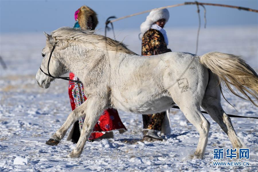 1月8日,牧民進行套馬表演。 時下正值草原冬季旅游旺季,內蒙古自治區(qū)西烏珠穆沁旗的牧民們在雪原上一展身手,為游客展現獨特的民族風情。 新華社記者 劉磊 攝