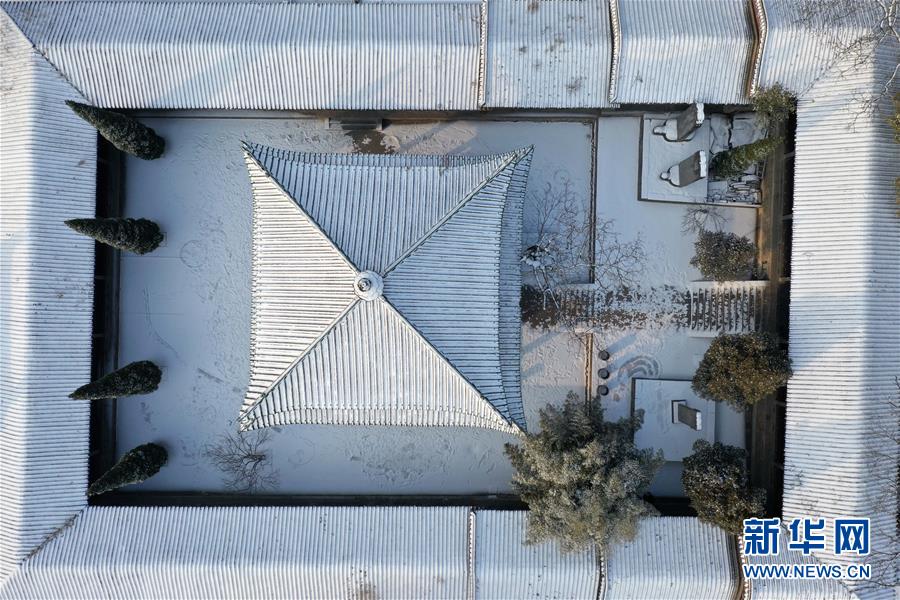 1月10日無人機拍攝的少林寺一景。當日,雪后初霽,河南登封少林寺分外秀美。新華社記者 李嘉南 攝