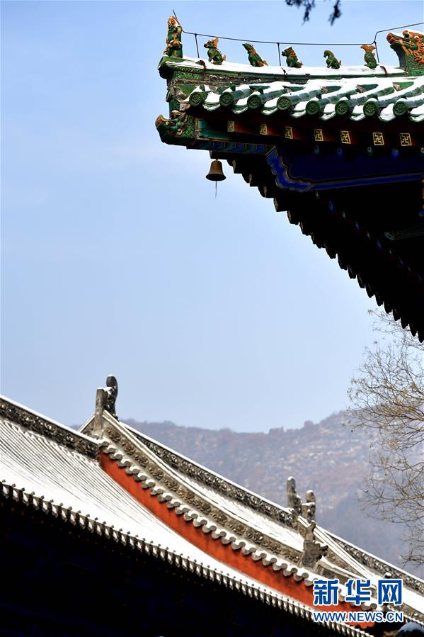 1月10日,游客在少林寺游覽。當日,雪后初霽,河南登封少林寺分外秀美。 新華社記者 朱祥 攝