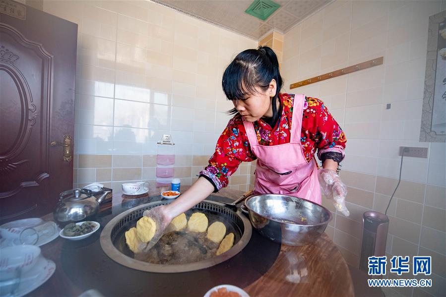 1月10日,在舒蘭市二合屯,農(nóng)家樂老板楊會(huì)為游客準(zhǔn)備東北特色菜肴。  新華社記者張楠攝