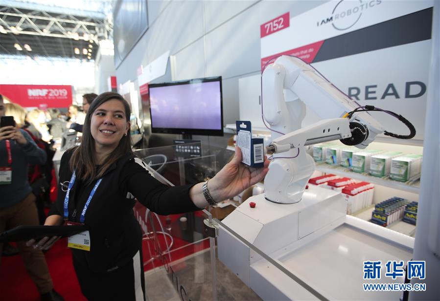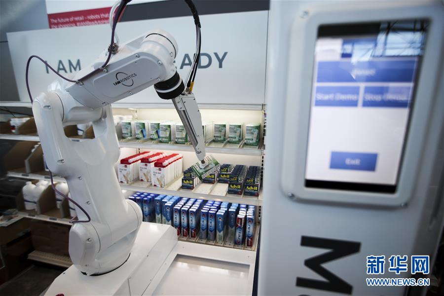 1月14日,在美國紐約舉行的全國零售商聯(lián)合會年度大會的“創(chuàng)新實驗室”展廳,自動取貨機(jī)器人根據(jù)顧客的要求抓取商品。 美國全國零售商聯(lián)合會年度大會于1月13日至15日在紐約舉行,許多來自世界各地的展商帶來使用新技術(shù)開發(fā)出的軟硬件產(chǎn)品,向觀眾展示未來零售業(yè)的新愿景。 新華社記者 王迎 攝
