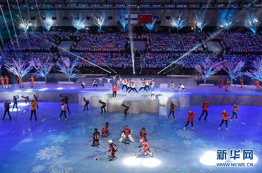 1月15日,演員在開幕式上表演。 當(dāng)日,“2019中芬冬季運(yùn)動(dòng)年”開幕式在北京首鋼冰球館舉行。 新華社記者申宏攝