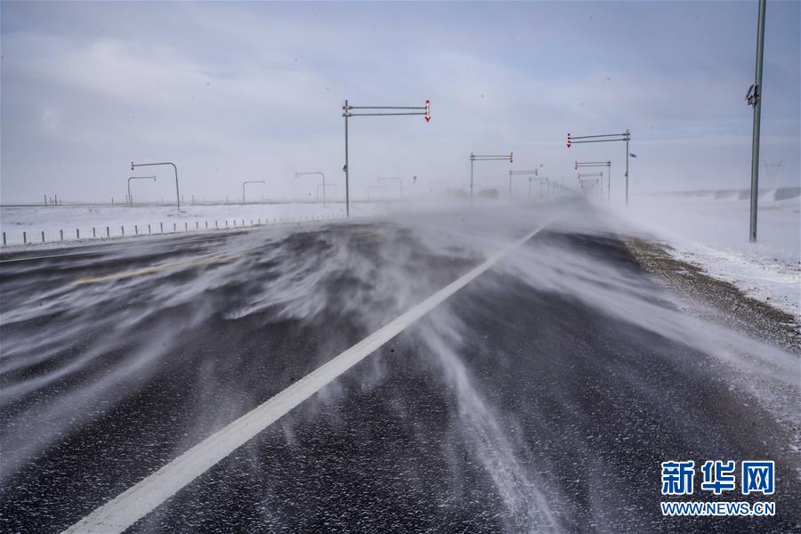 這是新疆瑪依塔斯風區(qū)內出現(xiàn)的“白毛風”現(xiàn)象(1月15日攝)。 瑪依塔斯風區(qū)位于新疆西北部額敏縣境內。這里東西風交替頻繁,一年大風天數超過150天,是世界上罕見的暴風雪災害地段。駐守在這里的新疆塔城公路管理局額敏分局瑪依塔斯應急保障基地,近年來連續(xù)裝備拋雪機等冰雪搶險救災裝備,有力地保障了這條道路的交通安全。 新華社記者趙戈攝