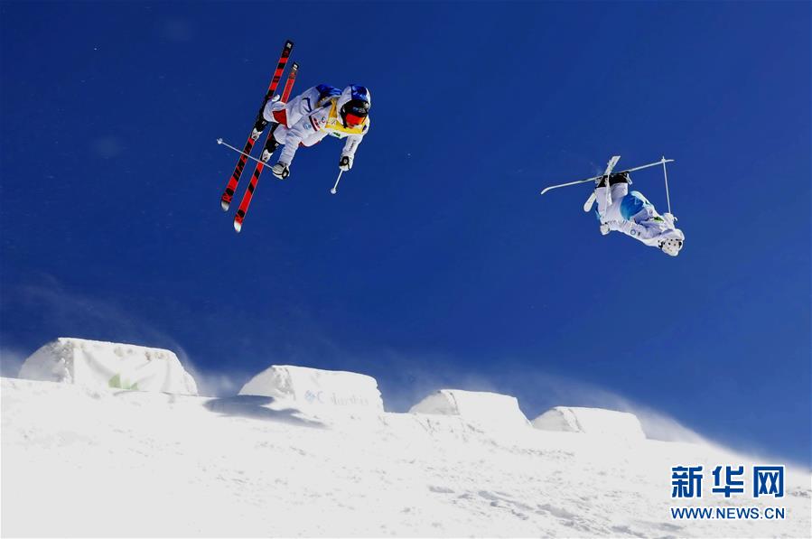 這是運動員在張家口市崇禮區(qū)太舞滑雪場參加自由式滑雪雪上技巧世界杯比賽(2018年12月16日攝)。