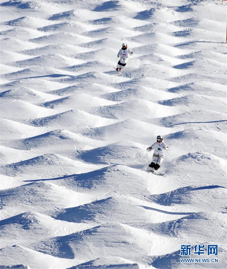 這是運(yùn)動(dòng)員在張家口市崇禮區(qū)太舞滑雪場參加自由式滑雪雪上技巧比賽(2018年12月14日攝)。 新華社記者楊世堯攝