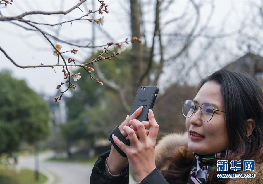 1月16日,游客在超山景區(qū)內(nèi)用手機(jī)拍攝綻放的白梅。 臨近春節(jié),浙江省杭州市余杭區(qū)超山景區(qū)內(nèi)的寒梅凌冬開放,黃色的臘梅已處處飄香,白梅和紅梅星星點(diǎn)點(diǎn)綻放在枝頭,大部分的梅花還處于“含苞待放”的狀態(tài)。據(jù)悉,杭州余杭超山景區(qū)的探梅期從1月中旬開始將一直延續(xù)到3月,春節(jié)期間將進(jìn)入最佳賞梅期。 杭州市余杭區(qū)超山景區(qū)以梅景而出名,為江南三大探梅勝地之一?;ㄩ_時(shí)節(jié)方圓十里如飛雪漫空,故有“十里梅花香雪海”之美譽(yù)。超山梅花已有1000多年的種植歷史,品種很多,有白梅、紅梅、綠萼梅,以白梅居多。 新華社記者 徐昱 攝