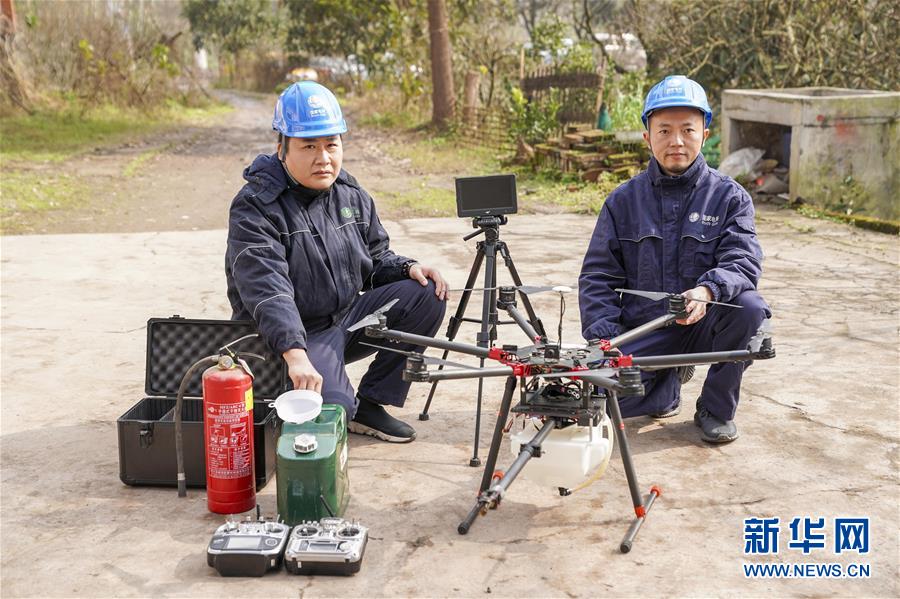 1月16日,噴火清障無人機的研發(fā)負(fù)責(zé)人何濤(右)和同事晏新展示噴火清障無人機。 1月16日,經(jīng)過3年多的研發(fā)和測試,重慶首臺噴火清障無人機在國網(wǎng)重慶永川供電公司無人機班正式投用。這臺多旋翼無人機,通過搭載帶有燃料箱、油泵、自動點火裝置的噴火吊艙任務(wù)模塊,可以對影響高空電力線路安全的飄掛物進行定點障礙清除作業(yè)。 據(jù)噴火清障無人機研發(fā)負(fù)責(zé)人何濤介紹,過去高空清除異物主要靠人工進行,為保證安全經(jīng)常需要停電作業(yè),因此他們結(jié)合實際工作經(jīng)驗和高空電力線路的自身特點,設(shè)計和制造出了噴火清障無人機。2018年測試期間,國網(wǎng)重慶永川供電公司無人機班在多種環(huán)境下成功執(zhí)行了50多次高空電力線路清障作業(yè)。 新華社記者 劉潺 攝