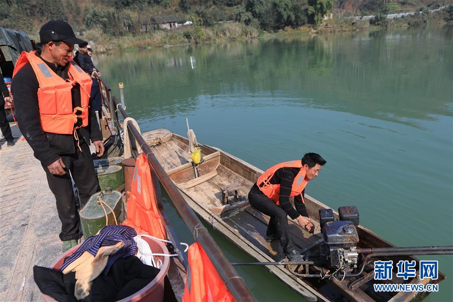 1月22日,何銀祥(左)在駕駛小船,他駕駛的小船是大船的動(dòng)力來源。 新華社記者 歐東衢 攝
