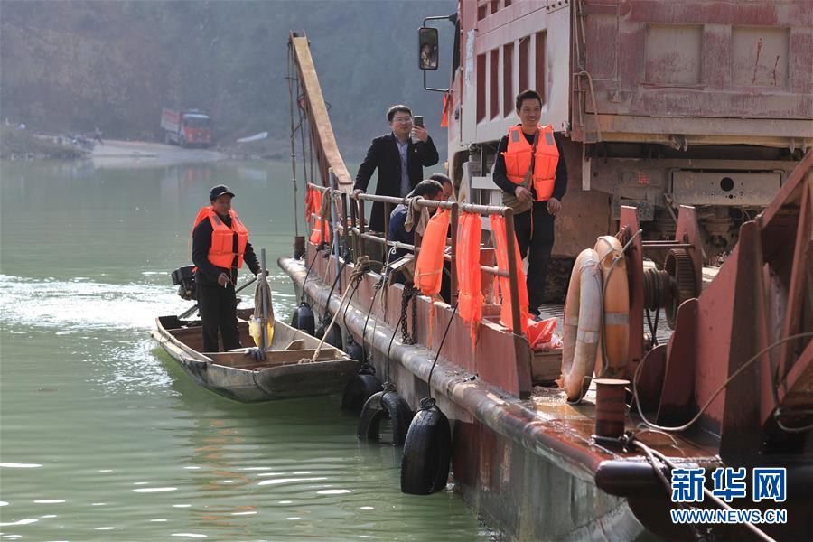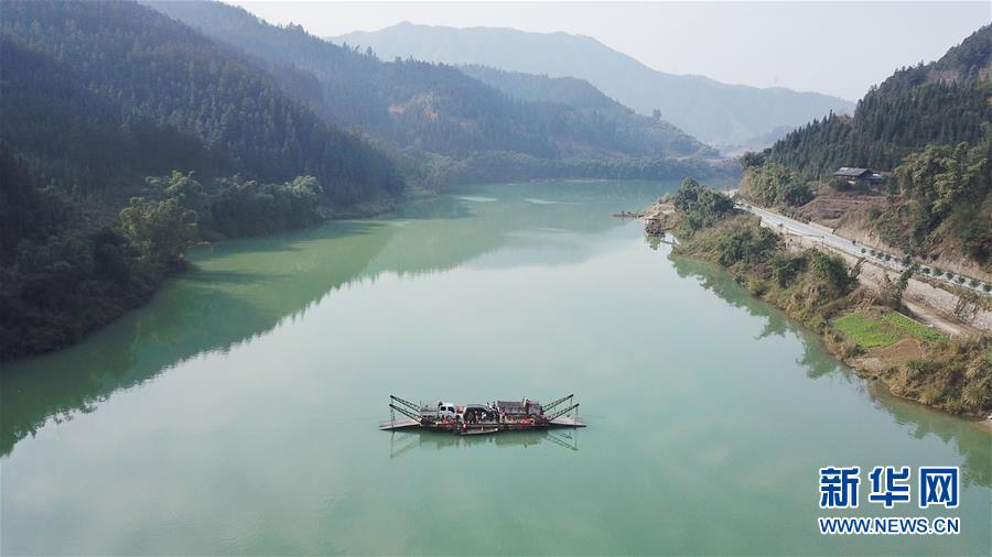 1月22日,渡輪在八吉渡口接送群眾(無人機(jī)拍攝)。新華社記者 歐東衢 攝