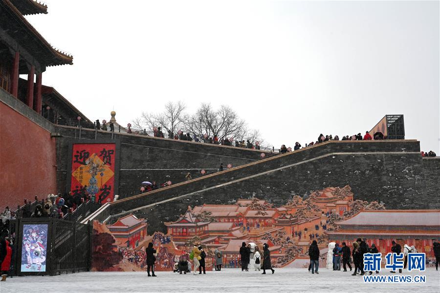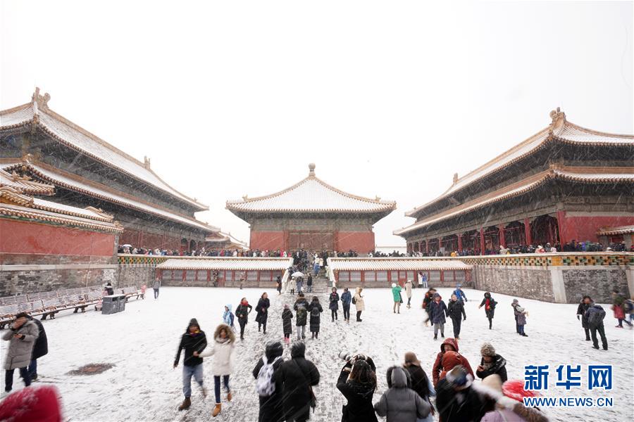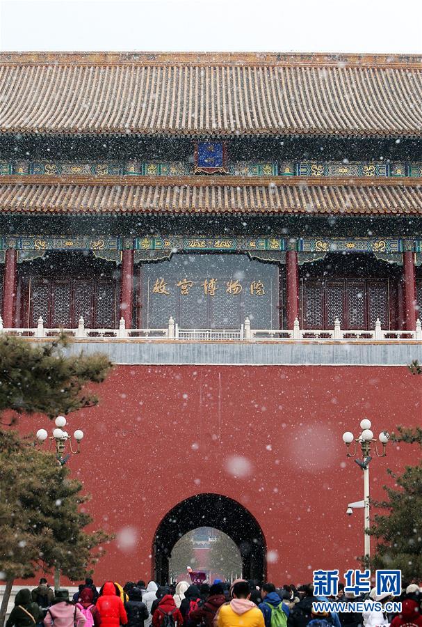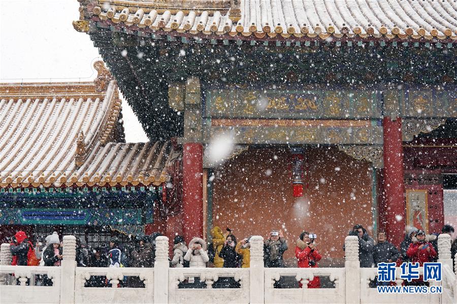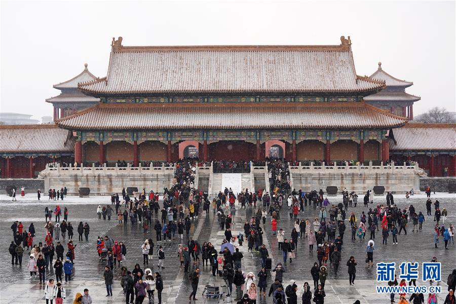 2月14日,游客在雪中游覽北京故宮。 當(dāng)日,北京降雪,大批游人來(lái)到故宮游覽賞雪。 新華社記者 李欣 攝