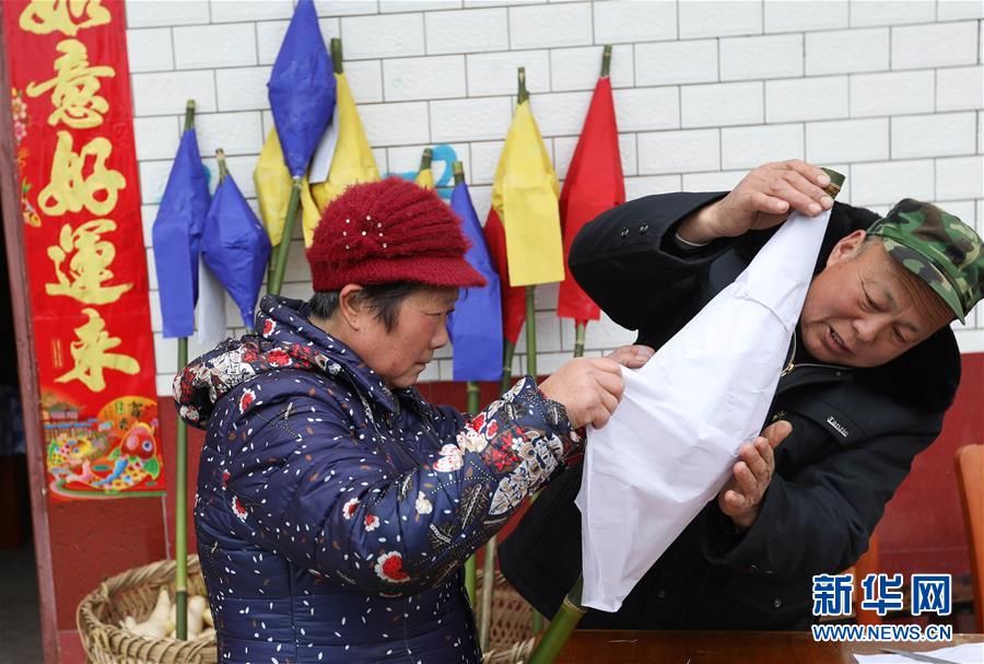 2月18日,在四川省南充市嘉陵區(qū)金寶鎮(zhèn)和祥社區(qū),65歲的李樹會(右)和老伴制作“蠐蟆燈”。 當(dāng)日是農(nóng)歷正月十四,夜幕降臨后,川渝等地?cái)?shù)萬名群眾在四川省南充市嘉陵區(qū)金寶鎮(zhèn)匯聚,點(diǎn)亮“蠐蟆燈”,敲著鑼鼓唱著歌謠,將“蠐蟆”送到幾公里外的田邊或者河邊燒掉,祈福健康平安。星星點(diǎn)點(diǎn)的燈光在鄉(xiāng)間小路閃爍移動,場面壯觀熱烈。 “送蠐蟆”祈福這一習(xí)俗源于清朝,歷經(jīng)演變成為川東北地區(qū)一個古老而神秘的地方民俗節(jié)日。 新華社記者 江宏景 攝