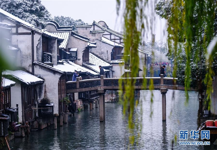 12月9日,烏鎮(zhèn)景區(qū)的染坊被白雪覆蓋。 受冷空氣影響,浙江省桐鄉(xiāng)市迎來大范圍降雪,千年古鎮(zhèn)烏鎮(zhèn)被厚厚的白雪覆蓋。小橋流水、白墻黑瓦的江南水鄉(xiāng)古鎮(zhèn),呈現(xiàn)出冬日雪鄉(xiāng)的獨(dú)特韻味,吸引各地游客前來觀賞。 新華社記者 徐昱 攝