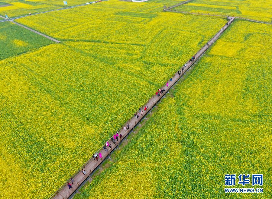 這是無人機航拍的廣漢市油菜花田(3月6日攝)。 新華社記者劉坤攝