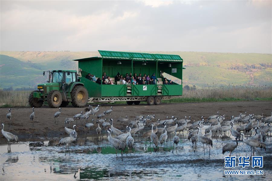 3月7日,在以色列阿格蒙胡拉鳥(niǎo)類和自然公園,游客乘坐拖拉機(jī)牽引的觀光車觀鳥(niǎo)。位于以色列北端的胡拉谷地冬季氣候相對(duì)溫暖濕潤(rùn),食物來(lái)源充足,是候鳥(niǎo)在歐洲和非洲之間遷徙的重要中轉(zhuǎn)站。20世紀(jì)90年代,當(dāng)?shù)剞r(nóng)民、以色列農(nóng)業(yè)部和自然保護(hù)組織共同設(shè)立阿格蒙胡拉鳥(niǎo)類和自然公園,在指定的地點(diǎn)給候鳥(niǎo)喂食,既能保護(hù)周邊農(nóng)田的莊稼不被候鳥(niǎo)啄食,又能為遷徙的候鳥(niǎo)補(bǔ)充之后旅程所需的能量,成為候鳥(niǎo)“加油站”。新華社記者郭昱攝
