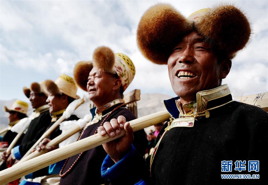 3月16日,山南市乃東區(qū)克松社區(qū)居民在開耕儀式上。 當日,西藏各地男女老幼身著節(jié)日盛裝,駕著一輛輛由彩旗、花朵裝扮一新的拖拉機,涌向待墾的農田,載歌載舞迎來一年一度的開耕儀式。 新華社記者 普布扎西 攝