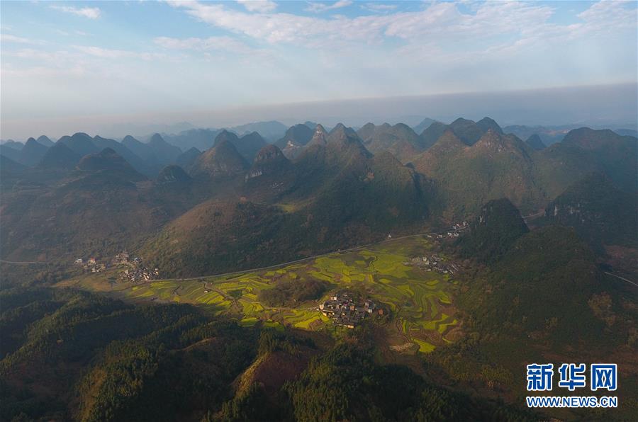 廣西融安縣東起鄉(xiāng)長豐村的田園春色(3月10日無人機(jī)拍攝)。 近日,隨著氣溫持續(xù)回升,廣西融安縣境內(nèi)的油菜花開放,春意盎然。 新華社記者 黃孝邦 攝