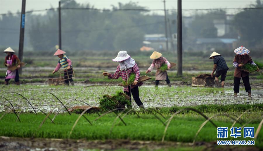 3月20日,廣西欽州市欽南區(qū)康熙嶺鎮(zhèn)那沙村村民在田間拋秧。春分將至,各地農(nóng)民搶抓農(nóng)時(shí)開展農(nóng)事活動(dòng),田間地頭到處是一派繁忙景象。 新華社記者張愛林?jǐn)z