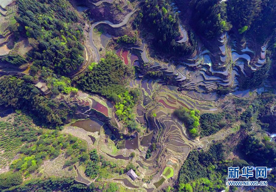 這是3月29日無人機拍攝的廣西融水苗族自治縣桿洞鄉(xiāng)黨鳩村的田園春色。
