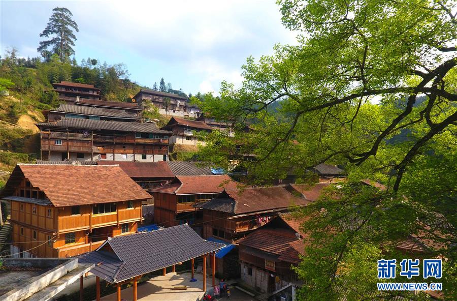 這是黔桂烏英苗寨春色(3月29日無(wú)人機(jī)拍攝)。