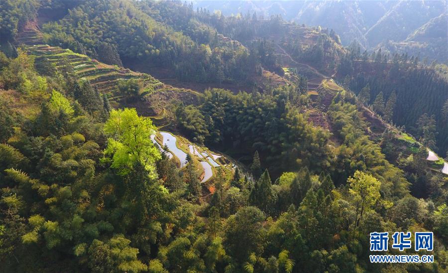 這是黔桂烏英苗寨春色(3月20日無(wú)人機(jī)拍攝)。