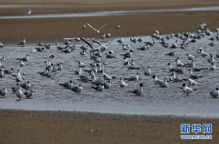 4月4日,一群候鳥在秦皇島市沿海濕地休憩。近日,大批候鳥飛抵河北省秦皇島市沿海濕地,出現(xiàn)“萬(wàn)鳥臨海”奇觀。秦皇島沿海濕地鳥類食物豐富,每年春、秋兩季,大批候鳥遷徙經(jīng)過這里。新華社記者 楊世堯 攝