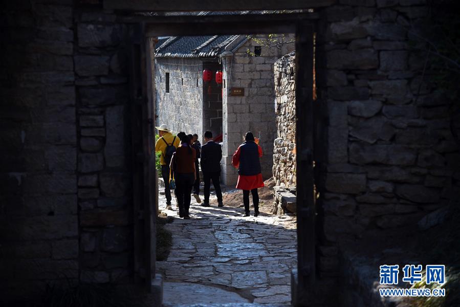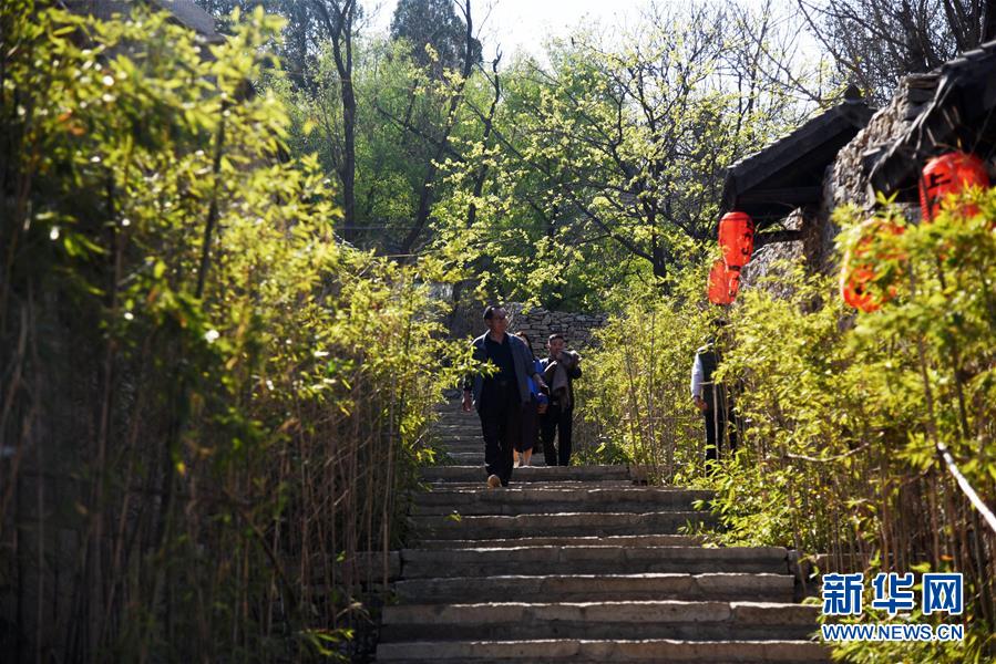 3月31日,游客在上九山村游覽。山東省鄒城市石墻鎮(zhèn)上九山村始建于宋代,是一座依山而建的石頭村,有明清建筑風(fēng)格的古民居300余套,古樸傳統(tǒng)的村貌吸引眾多游客。2019年1月,上九山村入選第七批中國歷史文化名村。 新華社記者 王凱 攝