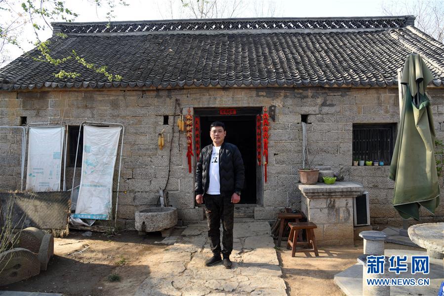鄭磊在山東省鄒城市石墻鎮(zhèn)上九山景區(qū)內(nèi)第一家農(nóng)家樂“上九人家”院內(nèi)留影(3月31日攝)。 新華社記者王凱攝