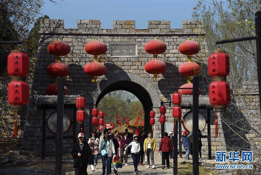 3月31日,游客在上九山村入口處游覽。山東省鄒城市石墻鎮(zhèn)上九山村始建于宋代,是一座依山而建的石頭村,有明清建筑風(fēng)格的古民居300余套,古樸傳統(tǒng)的村貌吸引眾多游客。2019年1月,上九山村入選第七批中國歷史文化名村。 新華社記者 王凱 攝