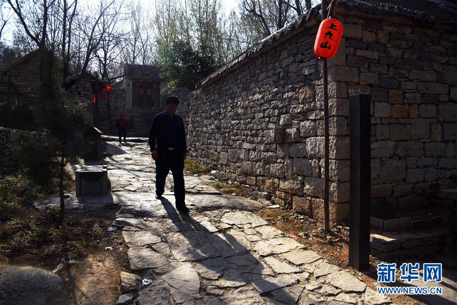 3月31日,村民挑擔(dān)走在上九山村的一條小道上。山東省鄒城市石墻鎮(zhèn)上九山村始建于宋代,是一座依山而建的石頭村,有明清建筑風(fēng)格的古民居300余套,古樸傳統(tǒng)的村貌吸引眾多游客。2019年1月,上九山村入選第七批中國歷史文化名村。 新華社記者 王凱 攝