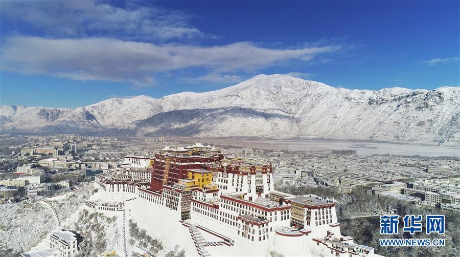 12月19日拍攝的雪后的布達拉宮。 12月18日,西藏拉薩市迎來今年入冬以來的首場降雪。19日清晨,拉薩雪后初霽,處處銀裝素裹,盡顯雪域高原之美。 新華社記者普布扎西攝