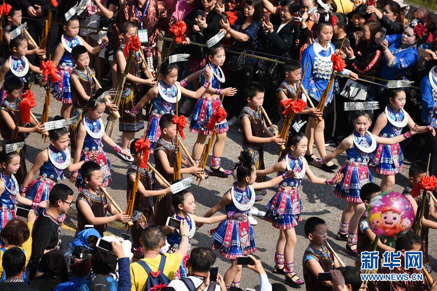 4月18日,臺江縣苗族群眾參加盛裝游演活動。 當日,貴州省黔東南苗族侗族自治州臺江縣迎來一年一度的苗族姊妹節(jié)。節(jié)日期間將舉行苗族盛裝游演、千人長桌宴、千人游方體驗、苗族手工創(chuàng)意大賽等一系列活動。 姊妹節(jié)是臺江縣苗族同胞的傳統(tǒng)節(jié)日,2006年被列入第一批國家級非物質文化遺產名錄。 新華社記者 楊文斌 攝