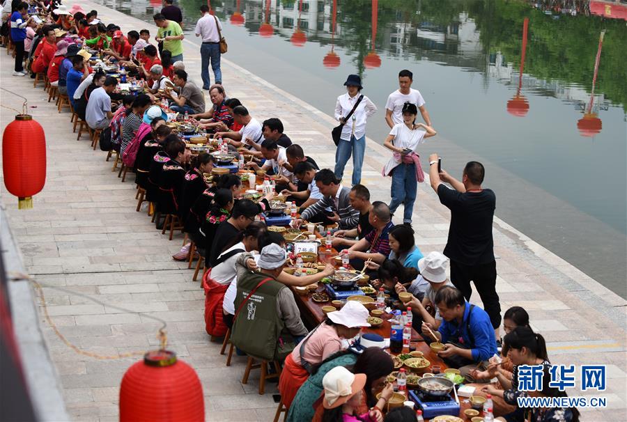 4月18日,游客在臺江縣參加苗族姊妹節(jié)長桌宴體驗活動。 當(dāng)日,貴州省黔東南苗族侗族自治州臺江縣迎來一年一度的苗族姊妹節(jié)。節(jié)日期間將舉行苗族盛裝游演、千人長桌宴、千人游方體驗、苗族手工創(chuàng)意大賽等一系列活動。 姊妹節(jié)是臺江縣苗族同胞的傳統(tǒng)節(jié)日,2006年被列入第一批國家級非物質(zhì)文化遺產(chǎn)名錄。 新華社記者 楊文斌 攝
