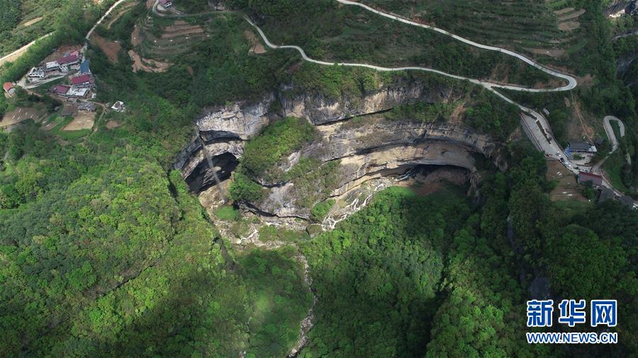 這是4月22日在陜西省漢中市寧強(qiáng)縣火石子村用無(wú)人機(jī)拍攝的地洞河天坑。位于陜西省漢中市寧強(qiáng)縣的地洞河天坑,是禪家?guī)r天坑群中規(guī)模最大的一處天坑,坑內(nèi)分布有石鐘乳、石筍,具有極高的地質(zhì)研究?jī)r(jià)值。 新華社記者 張博文 攝