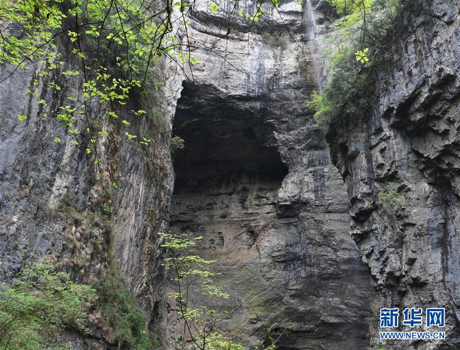 地洞河天坑的巖壁(4月22日攝)。位于陜西省漢中市寧強(qiáng)縣的地洞河天坑,是禪家?guī)r天坑群中規(guī)模最大的一處天坑,坑內(nèi)分布有石鐘乳、石筍,具有極高的地質(zhì)研究?jī)r(jià)值。 新華社記者 張博文 攝