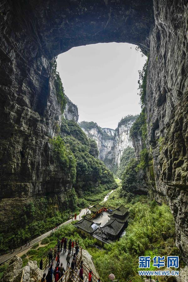游客在天生三橋景區(qū)游覽(3月27日攝)。 隨著天氣轉(zhuǎn)暖,重慶武隆天生三橋景區(qū)風(fēng)景如畫(huà),氣勢(shì)磅礴的天生石橋和綠意盎然的山林相映成趣,吸引眾多游客前來(lái)踏春賞景。 新華社記者劉潺攝