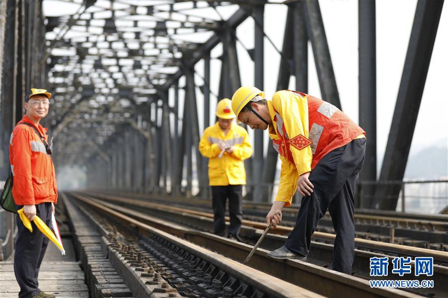 中國鐵路成都局有限公司重慶工務段的巡檢班組在白沙沱長江大橋上等待機車通過后繼續(xù)作業(yè)(4月23日攝)。 4月23日下午5點40分,隨著重慶白沙沱長江大橋通行的最后一列客運列車順利通過,這座“服役”了59年的重慶首座長江大橋進入“退役”倒計時。4月24日后,所有列車將改線經(jīng)距白沙沱長江大橋約100米的新白沙沱長江特大橋通行,新橋“接力”老橋,運輸能力將得到大幅提升。 白沙沱長江大橋于1958年開工,1960年通過首趟列車,是繼武漢長江大橋之后的第二座長江大橋。 新華社記者 劉潺 攝