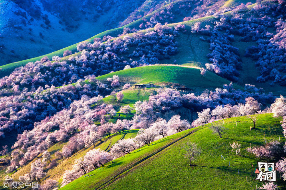 【新疆杏花溝中世紀原始野杏林】新疆杏花溝,位于新疆伊犁新源縣吐爾根鄉(xiāng),這是一片中世紀遺留最大的原始野杏林,集中分布于鞏乃斯河北岸,占地有3萬多畝,綿延十幾公里。這里,曾被評為“人生中不得不去的100個地方”。進入四月,燦若云霞的杏花如期而至,花開漫山,微風拂過便下了一場杏花雨,呈現(xiàn)出“杏花枝上著春風,十里煙村一色紅”美景。隨著陽光射入角度的變化會呈現(xiàn)出不同的美景。