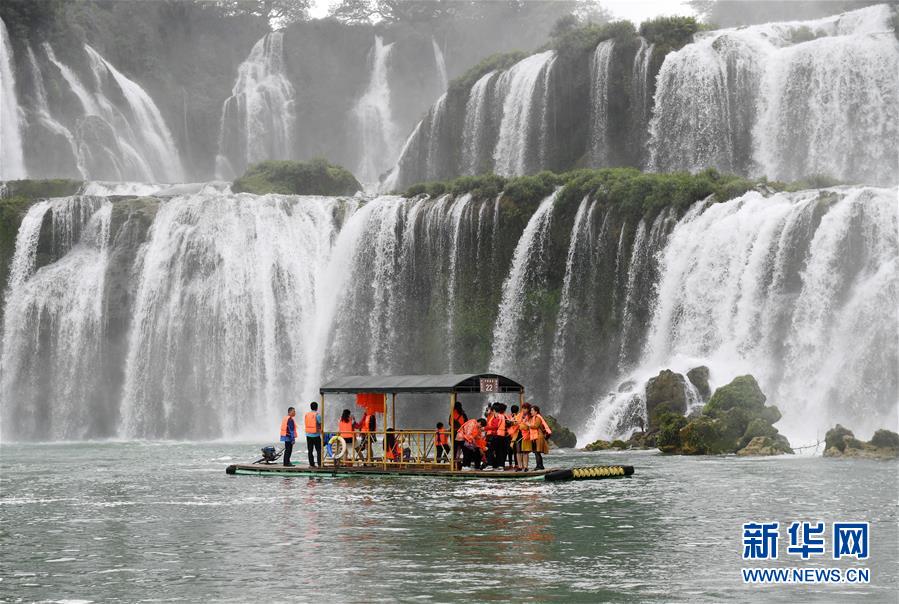 游客在廣西大新縣德天瀑布景區(qū)觀光(4月17日攝)。 新華社記者 陸波岸 攝