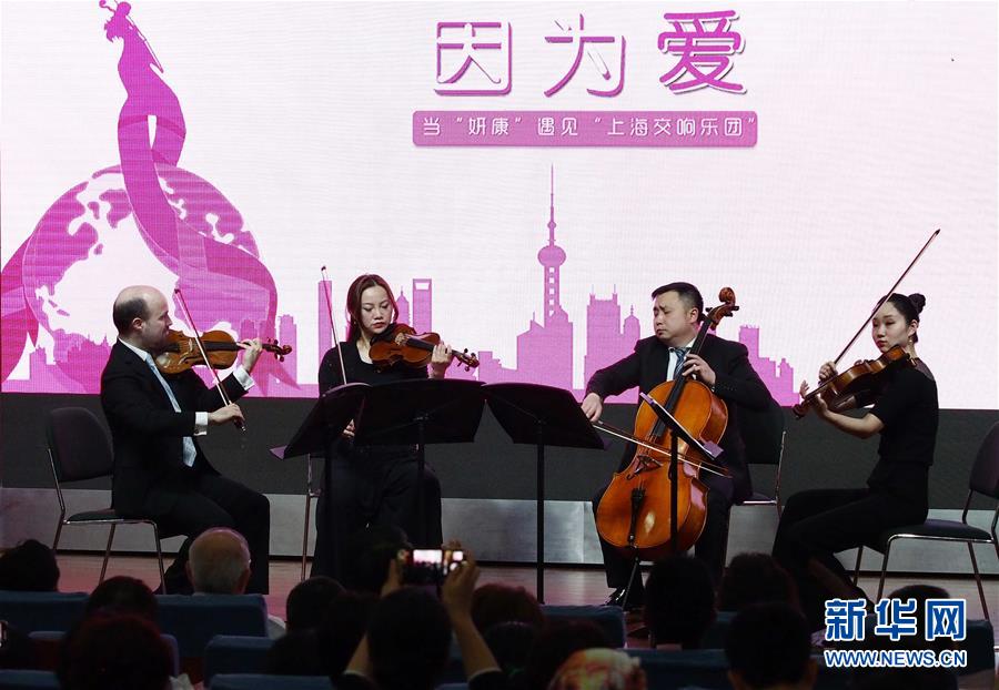 4月25日,上海交響樂團(tuán)的藝術(shù)家在復(fù)旦大學(xué)附屬腫瘤醫(yī)院為患者和醫(yī)護(hù)人員演奏。 當(dāng)日,第一場“全城交響·上交為你而來”音樂會(huì)在復(fù)旦大學(xué)附屬腫瘤醫(yī)院報(bào)告廳奏響,為患者及醫(yī)護(hù)人員獻(xiàn)上一場專屬音樂會(huì)。“全城交響·上交為你而來”是上海交響樂團(tuán)2019年向全上海的機(jī)構(gòu)及個(gè)人開放的公益演出項(xiàng)目。 新華社記者 任瓏 攝