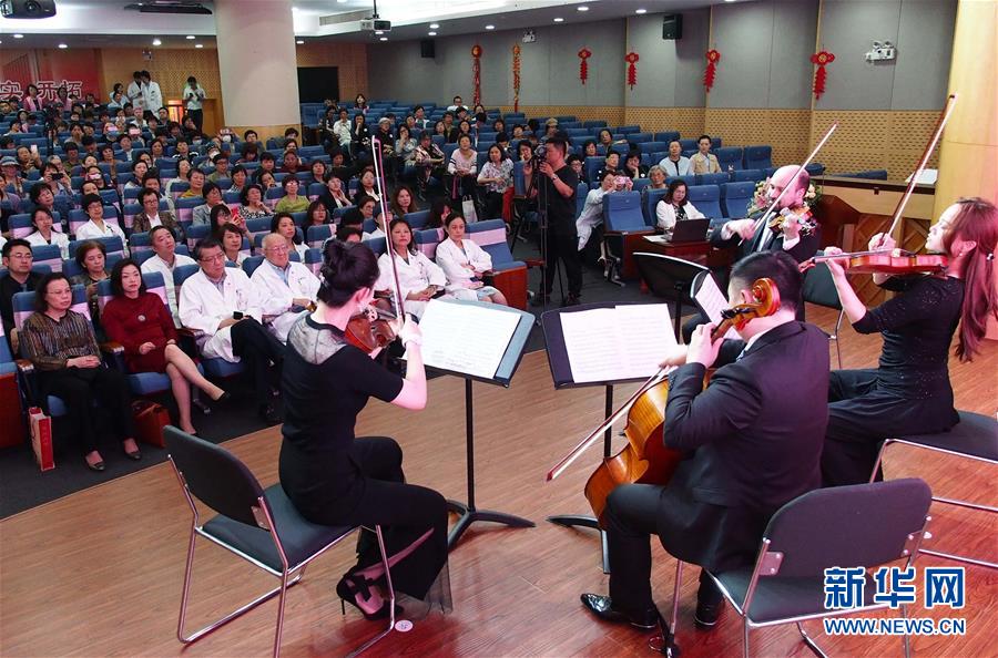 4月25日,上海交響樂團的藝術(shù)家在復(fù)旦大學(xué)附屬腫瘤醫(yī)院為患者和醫(yī)護人員演奏。 當日,第一場“全城交響·上交為你而來”音樂會在復(fù)旦大學(xué)附屬腫瘤醫(yī)院報告廳奏響,為患者及醫(yī)護人員獻上一場專屬音樂會。“全城交響·上交為你而來”是上海交響樂團2019年向全上海的機構(gòu)及個人開放的公益演出項目。 新華社記者 任瓏 攝