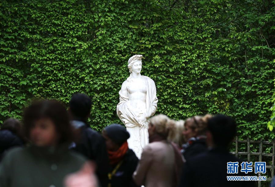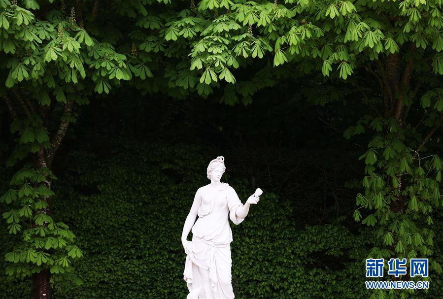 這是4月25日在法國巴黎近郊拍攝的凡爾賽花園內(nèi)的雕塑。新華社記者高靜攝