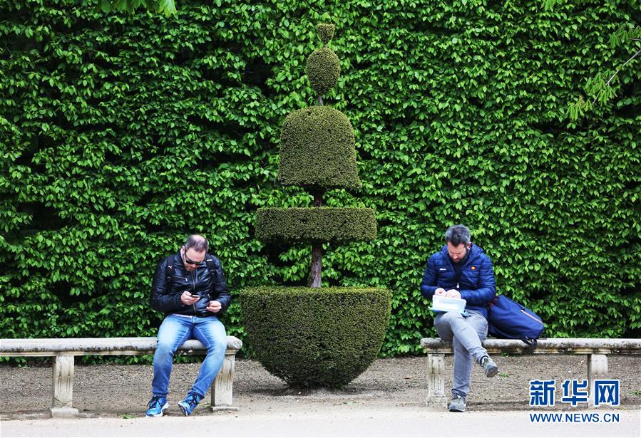 這是4月25日在法國巴黎近郊凡爾賽花園內(nèi)拍攝的經(jīng)過精心修剪的樹木。新華社記者高靜攝