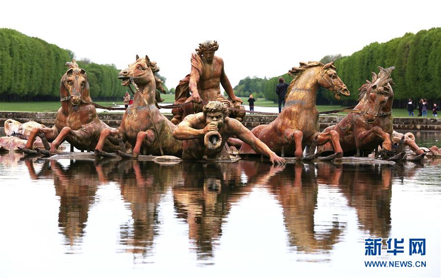 這是4月25日在法國巴黎近郊拍攝的凡爾賽花園內(nèi)的雕塑。 新華社記者高靜攝