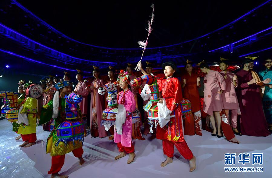 4月27日,表演結(jié)束后,模特在向觀眾致意。 當(dāng)日,土樓光語國際時尚大秀在福建省南靖縣的土樓裕昌樓內(nèi)舉行。這場融匯文化、時尚與旅游元素的大秀,通過傳統(tǒng)與時尚的有機(jī)融合,展現(xiàn)南靖土樓及文化的魅力和風(fēng)采。 新華社記者魏培全攝